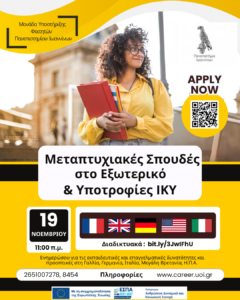 Διαδικτυακή εκδήλωση με θέμα “Μεταπτυχιακές Σπουδές στο Εξωτερικό και Υποτροφίες ΙΚΥ”_Τετάρτη 19 Νοεμβρίου 2025 5 Νοεμβρίου 2025 Γραμματεία ΠΤΔΕ Μεταπτυχιακές Σπουδές στο εξωτερικό και Υποτροφίες ΙΚΥ