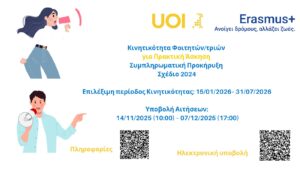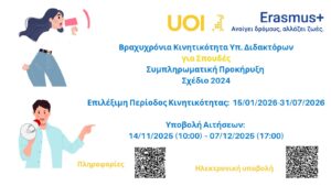 Ανακοίνωση – Συμπληρωματικές Προκηρύξεις Erasmus+, Σχέδιο 2024 για (i) Βραχυχρόνια Κινητικότητα Υπ. Διδακτόρων για Σπουδές και/ή (ii) Πρακτική Άσκηση για όλους τους κύκλους σπουδών
